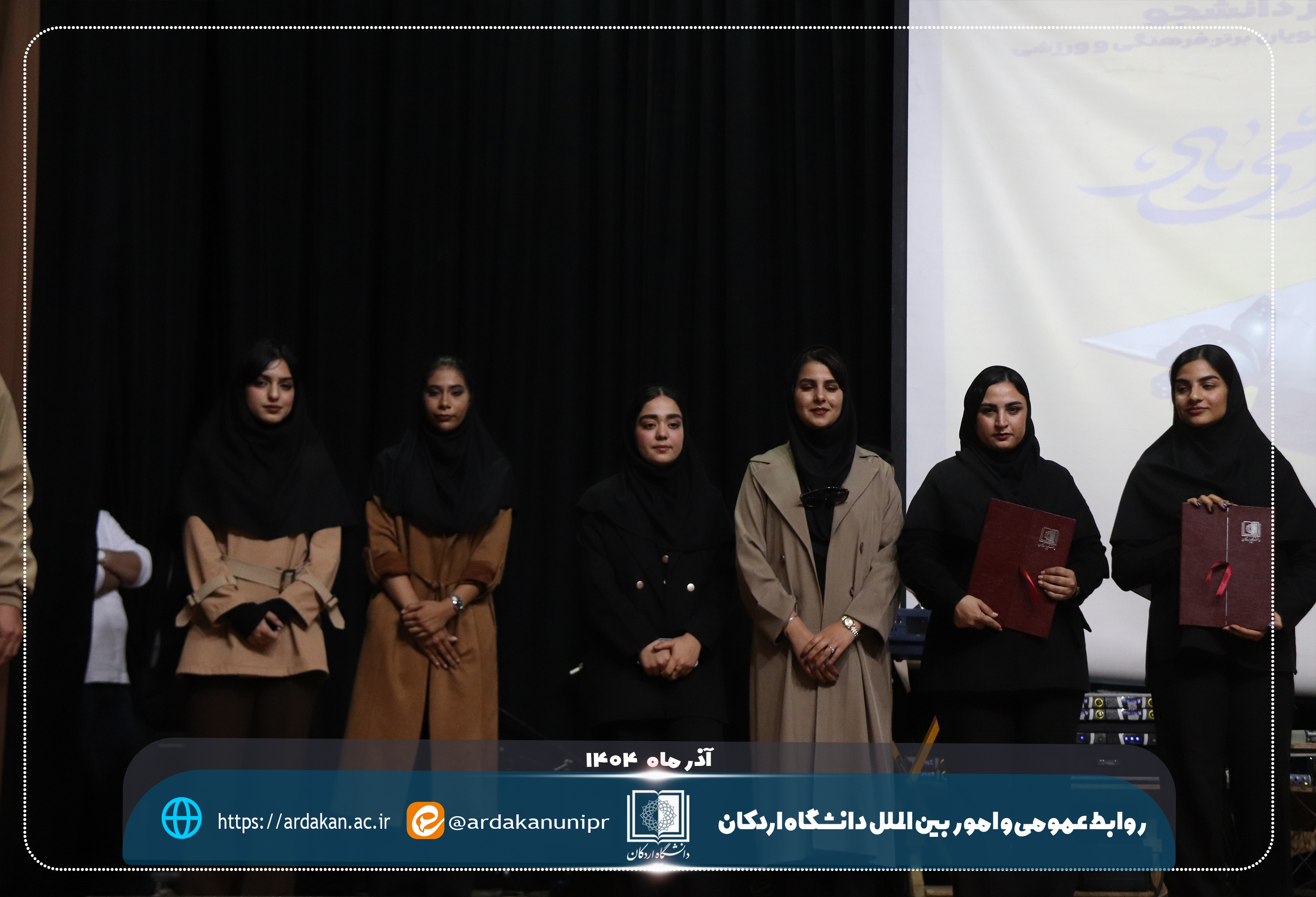 در بخش‌های مختلف این جشن، از دانشجویان برتر فرهنگی، ورزشی و دانشجویی تقدیر به‌عمل آمد. همچنین از انجمن علمی علوم آزمایشگاهی دامپزشکی دانشگاه اردکان که در هجدهمین دوره جشنواره بین‌المللی حرکت با نشریه «نات» موفق به کسب رتبه برگزیده شده بود، تجلیل شد. در ادامه، از تیم رباتیک دانشگاه اردکان که توانست در رقابت‌های ملی جام آبی مقام دوم مجموع مسابقات کشور را به‌دست آورد نیز تقدیر شد و این موفقیت به‌عنوان یکی از افتخارات علمی دانشگاه مورد تحسین قرار گرفت.