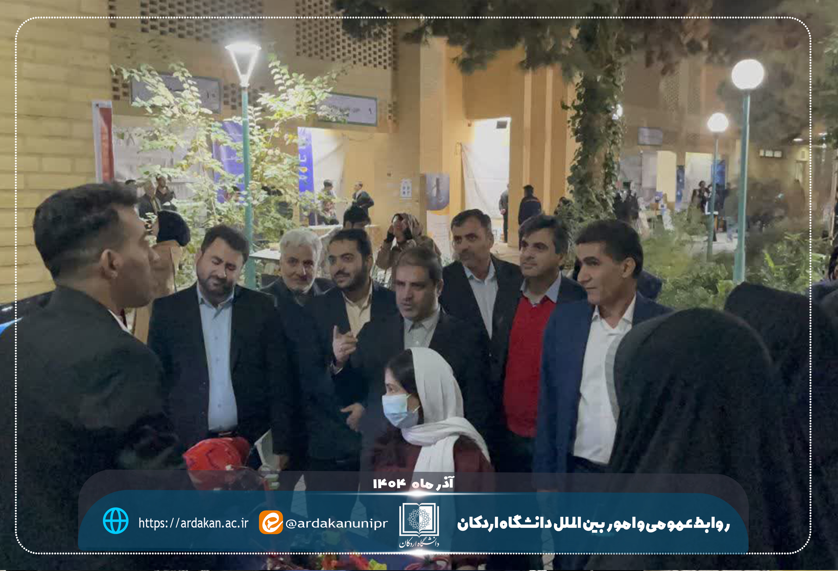 در این آیین علمی و پژوهشی که با حضور دانشگاه‌ها و مجموعه‌های علمی استان یزد برگزار شد، غرفه دانشگاه اردکان با استقبال خوب و پرشور بازدیدکنندگان روبه‌رو شد و مورد توجه اقشار مختلف جامعه قرار گرفت. بازدیدکنندگان، از نزدیک با دستاوردها، ایده‌ها و پروژه‌های اجرایی‌شده توسط دانشجویان دانشگاه اردکان آشنا شدند.